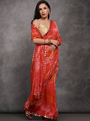Multi Colour Chiffon Shaded Crush Sequins And Moti And Cutdana Work Saree With Blouse Piece