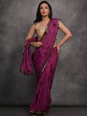 Lavendar Silk Chiffon Viscose Border Floral Printed Saree Saree With Blouse Piece