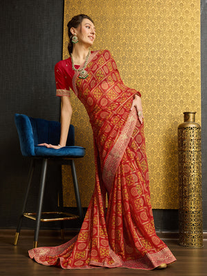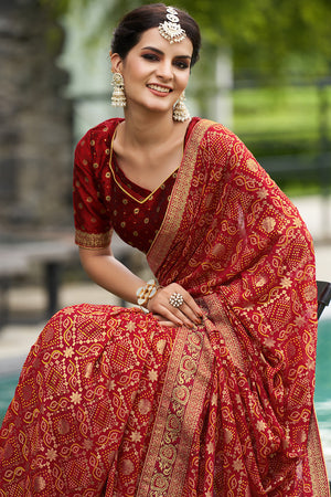 Georgette sarees with beautiful banarasi weaving designs and bright colours have won the hearts of many women across the country. These beautiful sarees are perfect for traditional events and festivals.