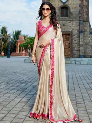 White Georgette Sequins Embroidery Work With Cut Work Border Saree With Blouse Piece