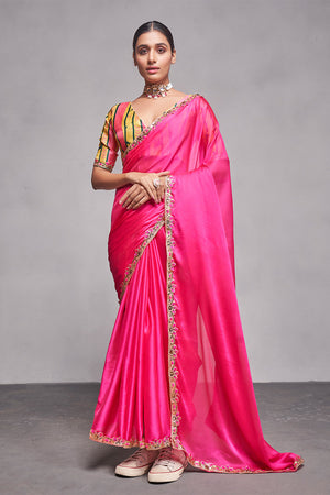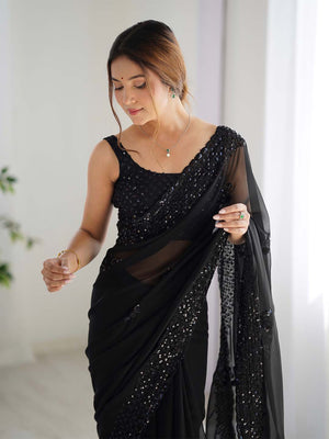 Multi Colour Pure Georgette Padding Sequins Embroidery Work Blouse Fabric Ultra Sattin Saree With Blouse Piece