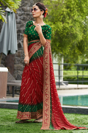 Georgette sarees with beautiful banarasi weaving designs and bright colours have won the hearts of many women across the country. These beautiful sarees are perfect for traditional events and festivals.