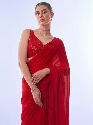 When styling a Georgette saree, it is really important to choose a blouse that matches the feel of the overall aesthetic you want. The saree blouse design has to be such that it perfectly compliments the beauty of the saree. For a traditional look, you can go with a simple blouse design. You can even experiment with unique blouse designs to create a more contemporary look.